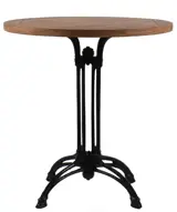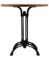 Teakhouten tafel met rond teakhouten tafelblad en een gietijzer tafelonderstel. Het tafelblad is gemaakt van onbehandeld teak en heeft een doorsnede van 70 cm. Het gietijzeren onderstel heeft een 4 poot voet. De hoogte van de tafel is 74 cm. Deze teakhouten tafel is stevig en stabiel en geeft sfeer aan uw terras of horecagelegenheid.
