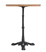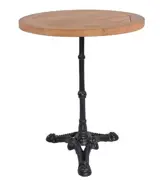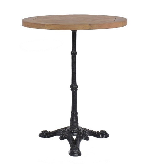 Mooie terras bistrotafel. Deze tafel heeft een rond teakhouten tafelblad van 60 cm en een gietijzer onderstel met een 3-teens voet. Het tafelblad is 2,5 cm dik en geschikt voor buiten gebruik. Teakhouten terras tafelbladen hebben een mooie authentieke uitstraling en zijn vervaardigd van onbehandeld teakhout. Doordat teakhout een natuurproduct is hebben alle tafelbladen een eigen structuur. Het onderstel is voorzien van steldoppen. Deze teakhouten tafel is stevig en stabiel en geeft sfeer aan uw terras of horecagelegenheid. De teakhouten tafel is makkelijk te monteren.