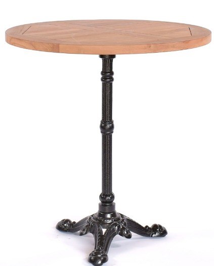 Mooie terras bistrotafel. Deze tafel heeft een rond teakhouten tafelblad van 70 cm en een gietijzer onderstel met een 3-teens voet. Het tafelblad is 2,5 cm dik en geschikt voor buiten gebruik. Teakhouten terras tafelbladen hebben een mooie authentieke uitstraling en zijn vervaardigd van onbehandeld teakhout. Doordat teakhout een natuurproduct is hebben alle tafelbladen een eigen structuur. Het onderstel is voorzien van steldoppen. Deze teakhouten tafel is stevig en stabiel en geeft sfeer op uw terras of horecagelegenheid. De teakhouten terrastafel is makkelijk te monteren.
