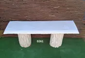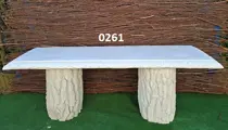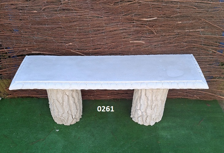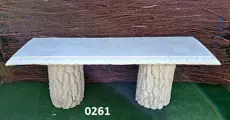 Tuinbank met boomstam zuil.