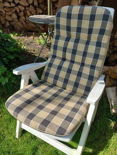 tuinstoelkussens, Summer - set- 4 stuks - er zit iets "weer" in, aan een kant - zijn gewassen - i.p.st. - 15,-