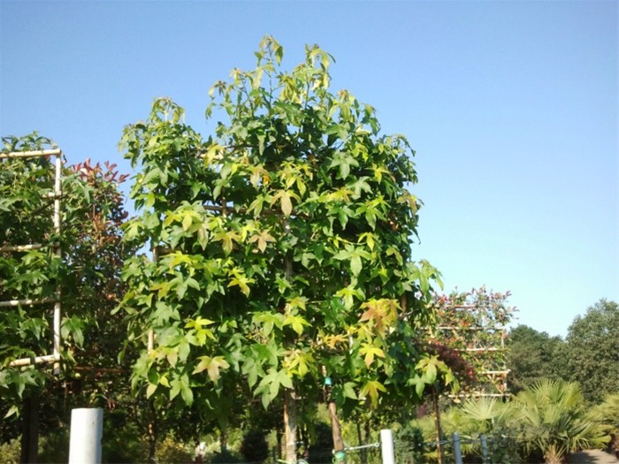 Liquidambar styraciflua leivorm / scherm / leiboom op stam .
