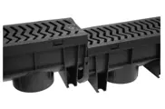 Het afwaterings kanaal is beschikbaar in lengtes van 1 meter in de kleur zwart en is gemaakt van 100% gerecycled kunststof.