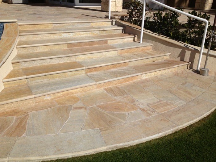 Flagstones Florida Yellow zijn prachtige flagstones met een warme en sfeervolle uitstraling. Door de warme kleuren geel/oranje en een vleugje lichtgrijs/bruin zijn deze flagstones uitermate geschikt voor een mediterraanse tuin en stijl. Naast de prachtige kleuren zijn deze flagstones zeer hard van structuur en zijn ze redelijk vlak van oppervlak. Kortom deze flagstones zijn gewoon topkwaliteit !!!