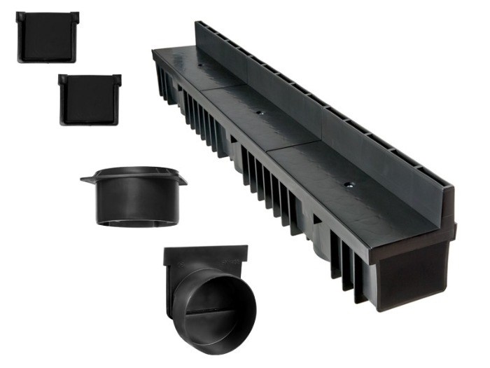 Onze sleufgoot/ lijngootsets bevatten alle onderdelen die u nodig heeft voor de complete installatie: