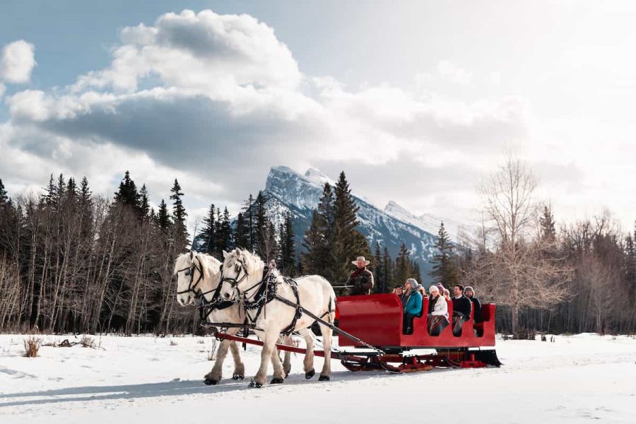 Tijdens deze excursie maak je met een door paarden getrokken slee een tocht door de bergweides van Banff. Tijdens de 40 minuten durende rit heb je alle tijd om te genieten van de prachtige uitzichten terwijl je ook je ogen open houdt voor wildlife zoals rendieren! Aan het eind van de route kan je opwarmen bij het kampvuur met een warm drankje (inclusief).Vertrek:Dagelijks elk uur van 10:00 t/m 17:00. Vertrekpunt bij de Banff Trail Riders Stables, aan het einde van Sundance Road in Banff.Prijs:19/12-04/01 en 08/02-16/02: € 47 p.p., kinderen van 4 t/m 12 jaar betalen € 3505/01-06/02 en 17/02-08/03: € 42 p.p., kinderen van 4 t/m 12 jaar betalen € 34Kinderen t/m 3 jaar zijn gratis