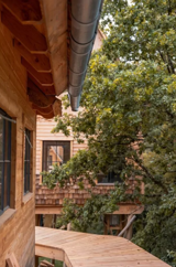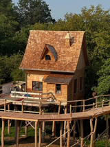 Recent gebouwde luxueus ingerichte boomhut op het terrein van een hotel. De boomhut ligt aan de rand van een bos, waar het heerlijk wandelen is.