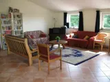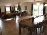 Er is een ruime woonkamer met grote eettafel, en zitgedeelte met openhaard, satelliettelevisie en DVD speler.