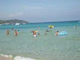 Op dit strand zijn talrijke strandtenten van luxe tot zeer luxe, met uitzicht op de jachten voor het strand.