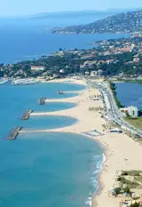 Op dit strand zijn talrijke strandtenten van luxe tot zeer luxe, met uitzicht op de jachten voor het strand.