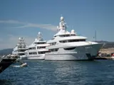 Op dit strand zijn talrijke strandtenten van luxe tot zeer luxe, met uitzicht op de jachten voor het strand.