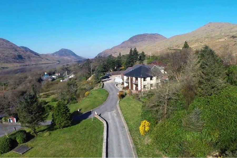 Het intieme hotel biedt een spectaculair uitzicht over het meer en de heuvels van Connemara. Het hotel beschikt over 11 kamers die in warme tinten zijn ingericht en voorzien zijn van douche/toilet, TV, telefoon, haardroger en koffie- en theezetapparaat. De meeste kamers hebben een balkon of een klein tuintje. In de authentieke Sailors Bar tref je ook de lokale bevolking en zijn er vaak muzieksessies. Het restaurant, waar je ook à la carte kunt eten, biedt een fraai uitzicht. Er is een‘Continental Breakfast’ inbegrepen. Er is een gemeenschapsruimte die voor groepen kan worden gebruikt voor workshops en andere activiteiten. Het woeste berglandschap met stenen muurtjes, vele kleine meertjes en met heide begroeide heuvels is zeer in trek bij wandelaars. Het hotel ligt vlakbij het Connemara National Park, waar schitterende wandelpaden zijn uitgezet. Vanuit het nabijgelegen Cleggan kan men een dagtocht per ferry maken naar het dunbevolkte eiland Inishbofin. De sprookjesachtige Kylemore Abbey ligt ook in de buurt. Er geldt een minimaal verblijf van 2 nachten.