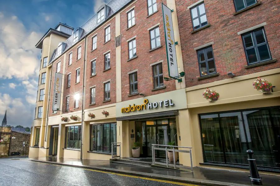 Het 4-sterren Maldron Hotel Derry ligt binnen de historische stadsmuren van Derry, vlakbij de winkelstraten en de Foyleside Shopping Mall. Het hotel bevindt zich op loopafstand van de Bogside-wijk, met het Bloody Sunday Monument en het Free Derry Museum. Het hotel beschikt over 90 kamers met bad of douche, toilet, haardroger, tv, koffie- en theezetfaciliteiten, bureau en zitje. Gratis wifi is beschikbaar. Sommige kamers bieden uitzicht op de rivier de Foyle en de 400 jaar oude stadsmuren. Voor het diner kun je kiezen uit het Stir Restaurant of de Lyric Bar & Grill. In het weekend is er entertainment in de bar. Er is een mini-gym en een sauna. Het hotel heeft een gratis ondergrondse parkeergarage met een beperkt aantal plaatsen (vooraf reserveren is niet mogelijk).