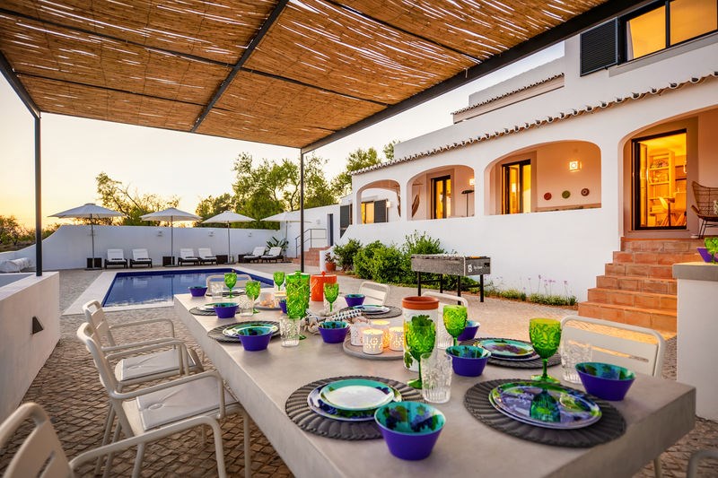 NIEUW! ***Villa Cerro e Alcaria, Boliqueime met mooi zeezicht***! Luxe en compleet nieuw gerenoveerde en smaakvol ingerichte 6-persoons villa met 3 slaapkamers, 3 badkamers, luxe keuken, eigen zwembad, buitenkeuken en een prachtig panorama zeezicht!*** *** Exterieur*** Deze geheel gerenoveerde luxe 6-persoons villa*** ligt in het streekje 'Cerro e Alcaria' ongeveer 5 minuten rijden vanaf het centrum van Boliqueime, Centraal Algarve. *** Het huis is mooi landelijk gelegen en heeft een geheel omheinde tuin met een automatische poort. In de tuin staan allerlei bomen zoals olijf-, amandel-, citrus- en palmbomen. In de directe omgeving liggen enkele andere huizen. Het heeft een eigen zwembad (8 x 4 meter). Op het terras rondom het zwembad staan voldoende comfortabele ligbedden en parasols. Er is een buitendouche en zwembadverwarming aanwezig (optioneel voor 100,- euro per week). *** Er is een gloednieuwe buitenkeuken voorzien van gasbarbecue, plancha grilplaat, extra koelkast en waterpunt. Ook is er een grote 8-persoons tafel onder een rieten overkapping. *** Op de gezellige veranda kunt u heerlijk genieten van het mooie uitzicht op de kust.*** Een fijne plek voor een relaxte vakantie in de Algarve!*** Interieur*** De villa Cerro e Alcaria is in 2018 compleet verbouwd en voorzien van vele nieuwe elementen en ruimtes (zoals een nieuwe keukens, slaapkamers, badkamers, bedden, buitenkeuken en vernieuwd zwembad). *** Het huis heeft een smaakvolle en eigentijdse inrichting. De nieuwe keuken is voorzien van allerlei Bosch apparatuur zoals inductiekookplaat, heteluchtoven, magnetron, afwasmachine en koelkast. Naast de open keuken is een eetkamer met grote tafel en openslaande deuren naar de veranda en het zwembad. *** In de woonkamer is een gezellige zithoek en flatscreen-tv (NL) aanwezig. Ook zijn er Nederlandse boeken en spelletjes. De zitkamer heeft ook openslaande deuren naar de veranda. *** De villa heeft 3 slaapkamers, allen voorzien van airconditioning en 3 badkamers waarvan 1 en-suite. De badkamers zijn afgewerkt met tadelac en voorzien van dubbele wastafels en bad en/of regendouche. *** De villa kan ook gehuurd worden op basis van 4 slaapkamers en 4 badkamers. Zie voor meer informatie: Villa Cerro e Alcaria (8 p) met code 1703. De villa wordt uitsluitend aan één partij tegelijkertijd verhuurd. Er is draadloos internetverbinding, een satelliet-tv met Nederlandse kanalen en een Sonos-apparaat. In een aparte ruimte is een wasmachine, droogmachine en strijkgerei aanwezig. *** De villa heeft een wisseldag op zaterdag. In overleg kan hier buiten het hoogseizoen van afgeweken worden. *** De waarborgsom bedraagt 500,- euro. De villa wordt wekelijks schoongemaakt (eindschoonmaak inbegrepen). Naast de handdoeken voor binnengebruik, zijn er zwembadhanddoeken aanwezig. Kinderbedje en -stoel aanwezig. Zwembadverwarming (optioneel) voor 100,- euro per week. *** Wilt u meer informatie of heeft u vragen, neem gerust contact met ons op! *** Streekinformatie*** Boliqueime is een charmant van oorsprong agrarisch dorpje nabij zee in de Algarve. In het kleine centrum van Boliqueime zijn een paar winkeltjes, een bank, apotheek, postkantoor, een supermarkt, restaurants en bars aanwezig. Vanuit Boliqueime is het ongeveer 15 minuten rijden naar de prachtigste stranden (Falésia of Olhos de Agua). In het dichtbij gelegen Vilamoura zijn meerdere golfbanen gesitueerd. Restaurant: 2 km Supermarkt /centrum Boliqueime: 4 km Strand: 10 km Golf (Vilamoura): 10 km Loulé: 10 km Albufeira: 15 km Vliegveld Faro: 28 km*** Faciliteiten en ontspanning*** -- Vaste wisseldag op zaterdag (flexibel in overleg buiten het hoogseizoen). Optioneel zwembadverwarming: 100,- euro. De villa kan ook gehuurd worden op basis van 4 slaapkamers en 4 badkamers. Zie voor meer informatie: Villa Cerro e Alcaria (8 p) met code 1703. De villa wordt uitsluitend aan één partij tegelijkertijd verhuurd.*** --