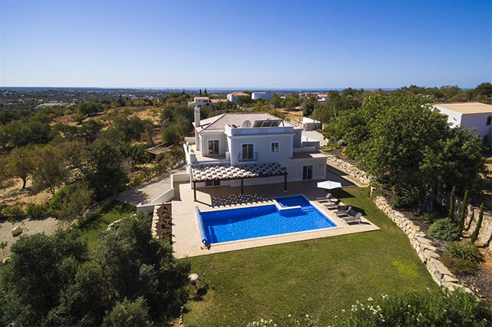 Luxe 8-persoons villa gelegen in een rustig streekje Marcos Mendes dichtbij het centrum van Boliqueime, Algarve. De villa heeft vier slaapkamers met en-suite badkamers, een luxe keuken (airco aanwezig in de keuken en de 'master' slaapkamer). Het heeft en groot zwembad met comfortabel buitenmeubilair, een mooi aangelegde royale tuin met diverse terrassen, fruitbomen, gazons en een Jeus-de-boulesbaan. Een prachtig panorama uitzicht over de landerijen! *** *** Exterieur*** Deze nieuwe luxe villa ligt in rustig streekje Marcos Mendes dichtbij het centrum van het dorpje Boliqueime (restaurants, bars en winkeltjes) De tuin is fraai aangelegd en is o.a. voorzien van diverse terrassen, fruitbomen, een jeus-de-boulesbaan, gazons en een basketbal-plaats. *** De villa heeft aan de kant van het zwembad een deels overdekt terras waar een eettafel en een comfortabele loungeset staat. Het zwembad heeft een grote afmeting van 12 x 6 meter en is voorzien van een klein kinderbadje van 4 x 4 meter. Er zijn voor de rest ligbedden met een parasol en een grote gasbarbecue. aanwezig *** Vanaf de diverse terrassen bij het zwembad of in de tuin heeft u een fantastisch panorama uitzicht over de landerijen en de kuststrook!*** Interieur*** Deze ruime villa is recent geleden gebouwd en staat op een groot kavel met veel privacy. Het heeft een royale luxe leefkeuken (aan zwembadzijde) voorzien van allerlei luxe apparatuur, airconditioning, een aparte bar en eettafel en deuren richting het terras en zwembad. In een aparte zitruimte is een grote flat-screen-tv met diverse internationale kanalen, een CD- en DVD-speler aanwezig. *** In totaal zijn er 4 slaapkamers met ieder een eigen en-suite badkamer: één op kelderniveau, één op de begane grond en twee op de bovenverdieping. De master-slaapkamer op de bovenverdieping heeft airconditioning en een extra grote badkamer met bad. De overige slaapkamers kunnen voorzien worden van mobiele fans. *** De wisseldag is op zaterdag (flexibel in overleg in het voor- en naseizoen). De villa wordt tussentijds één keer per week schoongemaakt. Het beddengoed en handdoeken worden wekelijks gewisseld. Kinderbedje en kinderstoel op aanvraag. Zwembadhanddoeken en WIFI aanwezig. Streekinformatie*** Boliqueime is een charmant van oorsprong agrarisch dorpje nabij zee. In het kleine centrum van Boliqueime zijn een paar winkeltjes, een supermarkt en bars aanwezig. Vanuit Boliqueime is het ongeveer 15 minuten rijden naar de prachtigste stranden (Falésia/Olhos de Agua). In het dichtbij gelegen Vilamoura zijn meerdere golfbanen gesitueerd. Centrum Boliqueime / restaurants: 500 m Supermarkt: 750 m Strand: 10 km Golf (Vilamoura): 10 km Albufeira: 15 km Vliegveld Faro: 28 km *** *** *** Faciliteiten en ontspanning*** -- De wisseldag is op zaterdag (flexibel in overleg in het voor- en naseizoen).*** --