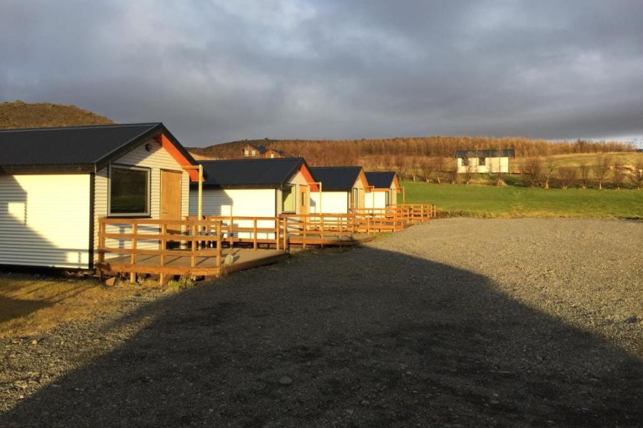 Deze cottages liggen ca.10 km ten zuiden van Varmahlid, bij het Bakkaflöt guesthouse en camping. Er zijn 5 cabins met douche/toilet geschikt voor 2/3 personen (geen kookfaciliteiten) en twee zomerhuizen (resp.25 m2 voor max.3 personen en 40 m2 voor max.5 personen). De grootste cottage heeft een aparte slaapkamer met 2-persoonsbed en 1-persoonsbed en 2 bedden in de woonkamer. De zomerhuizen hebben een gezellig interieur met woonkamer met TV, eettafel, volledig ingerichte keuken en douche/toilet. Bedlinnen & handdoeken zijn inbegrepen. Het guesthouse beschikt over 22 kamers met gedeelde faciliteiten, een bar, restaurant en een TV kamer. Gratis wifi in de openbare ruimtes. Verwarmd buitenzwembad met 2 hot tubs. Het ontbijt kan optioneel worden bijgeboekt. Vanuit Bakkaflöt worden spectaculaire river rafting en kajak excursies georganiseerd. Prachtige wandelomgeving.