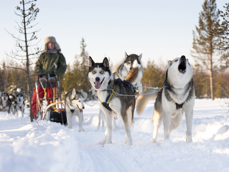 Stel je eens een tocht per huskyslee door de besneeuwde bossen voor! Een slee trekken is voor husky’s geen enkel probleem, ze kunnen hiermee zelfs hele hoge snelheden bereiken. Op de huskyboerderij ontmoet je ongeveer honderd Alaska- en Siberische husky’s. De gids zal uitleggen hoe je de slee kunt besturen, waarna je klaar bent om de arctische natuur in te gaan. 2 personen per slee. Bij terugkomst krijg je in de kota een kop koffie of thee.Duur: 2,5 uur incl. transfers