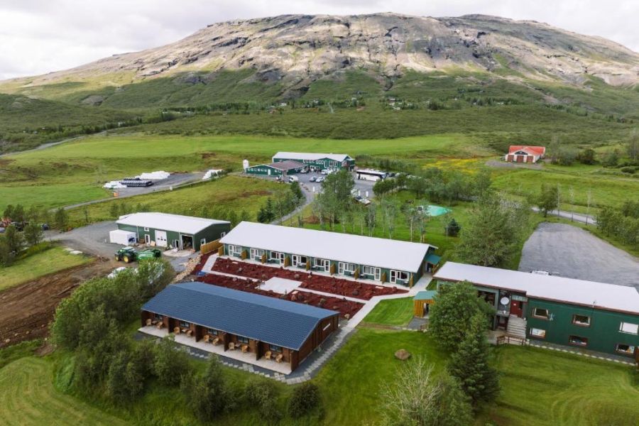 Farmhotel op een gunstige locatie om de natuurlijke attracties van Zuid-IJsland te verkennen. Op 10 minuten rijafstand van Geysir, 15 minuten van de Gullfoss waterval en 8 minuten van het Laugarvatn meer en de Fontana Spa. De 10 standaard tweepersoonskamers (18 m2) met douche en toilet bevinden zich in de lodge naast de paardenfarm. Er is ook een grote familiekamer voor max. 6 personen. Daarnaast zijn er 15 nieuwe superior kamers, die ruimer zijn (28 m2), waarvan een aantal beschikt over een terras. Gratis wifi, terras met een geothermisch verwarmde hot tub, bar, goed restaurant, waar men lokale gerechten serveert en koffie en heerlijk ijs. Vanuit het Cowshed Cafe kun je door het raam in de koeienstal kijken. Goede wandelmogelijkheden, paardrijdtochten mogelijk (op eigen gelegenheid of onder begeleiding).
