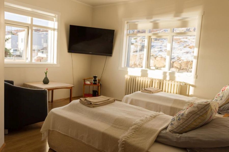 Het Finna hotel/guesthouse ligt in het centrum van het kleine vissersdorpje Holmavik in de Westfjorden en heeft uitzicht over de Steingrimsfjördur. Men heeft 17 eenvoudige kamers op 3 verdiepingen, met TV, koffie- en theezetfaciliteiten, douche/toilet en haardroger. Sommige kamers hebben uitzicht over de fjord. Op de begane grond is de receptie en een ontbijtruimte met een kleine bar. Van 1/5-30/9 kan het ontbijt optioneel worden bijgeboekt. Bij goed weer kan men buiten op het terras genieten van het uitzicht op de oceaan. Gratis wifi. In de omgeving zijn goede wandelmogelijkheden. Vanuit Holmavik vertrekken Whale Watching excursies. De Strandir regio is bekend vanwege haar mystieke verhalen over tovenarij, elfen, trollen en geesten, die worden verbeeld in de Sorcerer’s Cottage en het Sorcery & Witchcraft Museum in Holmavik. Isafjördur 224 km, Reykjavik 233 km, Akureyri 336 km.