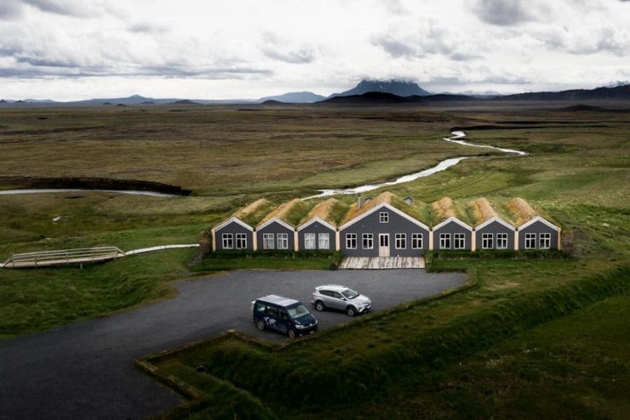 Halverwege tussen Myvatn en Egilsstadir gelegen hoogland accommodatie met bar/restaurant. Eenzame ligging, 8 km. van de ringweg. Dit is de hoogstgelegen farm van IJsland (469 meter). Je hebt de keuze uit kamers met eigen badkamer, kamers met gedeelde faciliteiten of slaapzakplaatsen. De kamers met eigen badkamer liggen in het Bakki gebouw met uitzicht op de bergen en beschikken over een parketvloer, bureau, koffie/theezetfaciliteiten, gratis wifi en een föhn. Gezellige lounge met haardkachel en kookfaciliteiten. De economy kamers kunnen gebruik maken van een gemeenschappelijke badkamer, keuken en woonkamer. Familiecottages in oude turfhuisjes voor 4-6 personen (60 m2) beschikbaar, met eigen douche/toilet. Het ontbijt kan optioneel worden bijgeboekt. In het Fjallakaffi restaurant worden traditionele IJslandse gerechten geserveerd, zoals kjötsupa (lamssoep) en arctic char (riddervis). Terras en kinderspeelplaats. Men organiseert 4x4 excursies naar de Askja vulkaan of de gletsjers en hot springs bij Kverkfjöll in de Highlands. Ook organiseert men wandeltochten naar de top van de Herdubreid berg (1682 m). Tegenover het guesthouse staat een pittoresk, klein kerkje, die maar door een paar mensen wordt gebruikt. Myvatn 71 km, Studlagil Canyon 75 km, Egilsstadir 110 km.