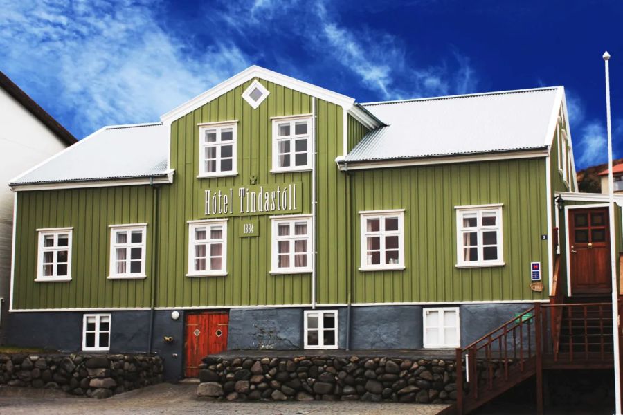 Dit sfeervolle, klassiek ingericht hotel is het oudste hotel van IJsland (1884). In het oude hoofdgebouw zijn 8 standaard kamers (15 m2) en 2 ruime deluxe kamers (32 m2). In de naastgelegen annex bevinden zich nog 10 kamers. Alle kamers hebben een parketvloer, bureau, TV, gratis wifi en een badkamer met douche/toilet, haardroger en badjassen. Dit driesterren hotel is in klassieke, romantische stijl ingericht. Ontbijtrestaurant en bar. In het Jarlstofa Restaurant kun je zomers ook dineren. Op de binnenplaats met terras is een grote hot tub, waar de gasten heerlijk kunnen ontspannen. Gratis parkeerplaats. Het hotel ligt in het centrum van Saudarkrokur, waar je een aantal restaurants, winkels en een zwembad vindt. Ook vind je hier de interactieve expositie 1238, The Battle Of Iceland, over de veldslagen in de Vikingtijd. Er worden zomers boottochten georganiseerd naar het eiland Drangey, waar je papegaaiduikers kunt spotten. Er zijn mooie wandelpaden langs het strand en in de bergen boven Saudarkrokur. Golfbaan op 3 km. Skagafjördur staat bekend als fokgebied van de IJslandse paarden. Ook voor vogelspotters is dit een paradijs. In Hofsos op het Troll Pensinula (35 km) vind je Sundlaug, een uniek zwembad met schitterend uitzicht over de oceaan. Varmahlid 24 km, Akureyri 118 km.