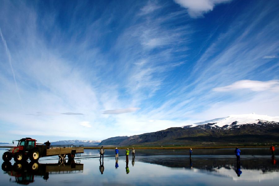 Het natuurreservaat Ingolfshöfdi ligt op een geisoleerde landtong aan de zuidoostkust van IJsland, met hoge kliffen, waar vele vogelsoorten nestelen. Vaak worden hier zeekoeten, alken, stormvogels, drieteenmeeuwen en grote jagers gezien. Op de landtong leven en broeden ook zo’n 300.000 papegaaiduikers. Papegaaiduikers dobberen hun hele leven op volle zee en komen alleen in het voorjaar aan land om voor het nageslacht te zorgen, waar ze broeden in grote kolonies. Dit doen ze op de kliffen aan de kust; hier nestelen ze zich in holen in de bodem. Vanaf half augustus keren ze weer terug naar zee. Bij deze excursie word je met een hooiwagen en tractor vervoerd naar Ingolfshöfdi. Dit traject (ca. 6 km.) voert in ca. 25-30 minuten door het water over een zwart strand naar de vogelkaap, waar een wandeling wordt gemaakt van 2-3 km. Je hebt hier ongeveer 1,5 uur de tijd om te wandelen. Prijs: € 98 p.p. Kinderen 6 t/m 16 jaar betalen 50%. Minimum leeftijd: 6 jaar.