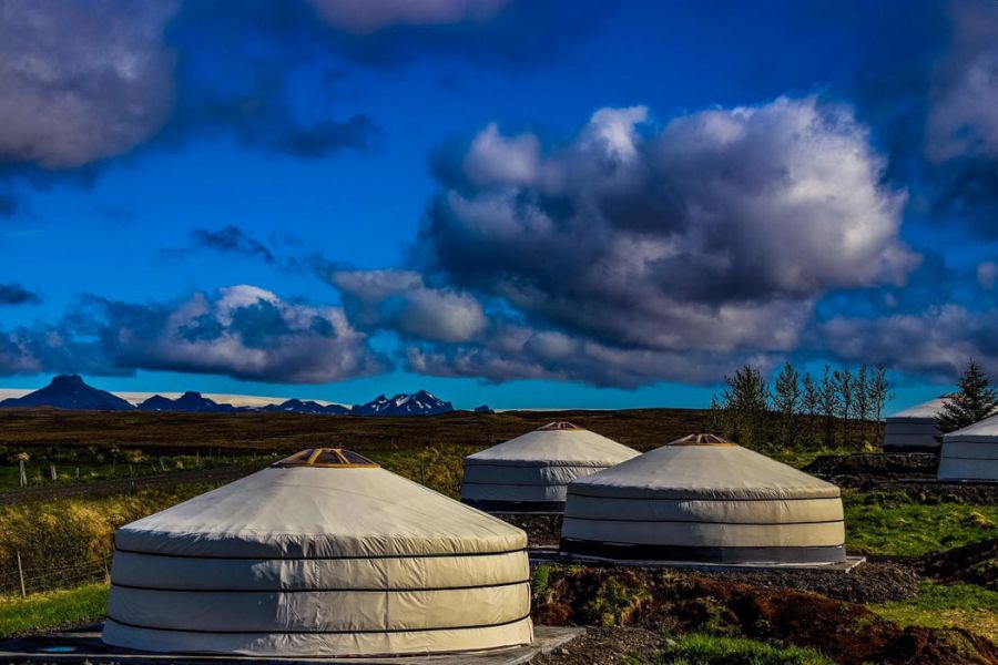 Een unieke glamping ervaring is een verblijf in een sfeervolle yurt. Deze van oorsprong Mongoolse ronde tenten, met een doorsnee van 6 meter, zijn van alle gemakken voorzien zoals: warm- en koud stromend water, koelkastje, thee/koffiezetfaciliteiten, een wastafel, toilet en vloerverwarming. Er zijn totaal 7 yurts, waarvan 3 met een 2-persoonsbed (op aanvraag kan er ook gereserveerd worden voor 2 aparte bedden) en een zitje. 3 Yurts hebben een 2-persoonsbed en een extra 1-persoonsbed en 1 is geschikt voor 4 personen met 2 extra 1-persoonsbedden. Er zijn 2 gemeenschappelijke grotere yurts, die zijn ingericht als bar/lounge en als restaurant, waar je ’s ochtends kunt ontbijten (inbegrepen, keuze uit 2 sessies om 08.30 uur of 09.15 uur). Op het terrein is een apart gebouw met 4 douches en 2 toiletten. Bedlinnen, handdoeken en eindschoonmaak zijn inbegrepen. Op 600 meter afstand vind je het Skjol Restaurant. Ideaal uitgangspunt voor bezoeken aan Geysir (4 km), de Gullfoss waterval (6 km), het Thingvellir National Park (64 km) of de Secret Lagoon (26 km). Vanwege de korte afstand adviseren wij Geysir en Gullfoss in de avonduren te bezoeken; dan is het er veel minder druk dan overdag. In de herfst- en wintermaanden kun je hier regelmatig genieten van het Noorderlicht. Reykjavik 110 km, Keflavik Airport 152 km. Men werkt met flexibele dagprijzen, afhankelijk van de beschikbaarheid op het moment van reserveren. De getoonde prijzen zijn derhalve richtprijzen.