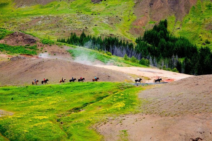 Vanuit Hveragerdi kun je verschillende paardrijtochten maken, die in lengte variëren van 1 tot 3 uur. De tours worden het gehele jaar door uitgevoerd. Paardrijervaring is niet noodzakelijk; de ritten worden begeleidt door een ervaren instructeur. Vertrektijden: