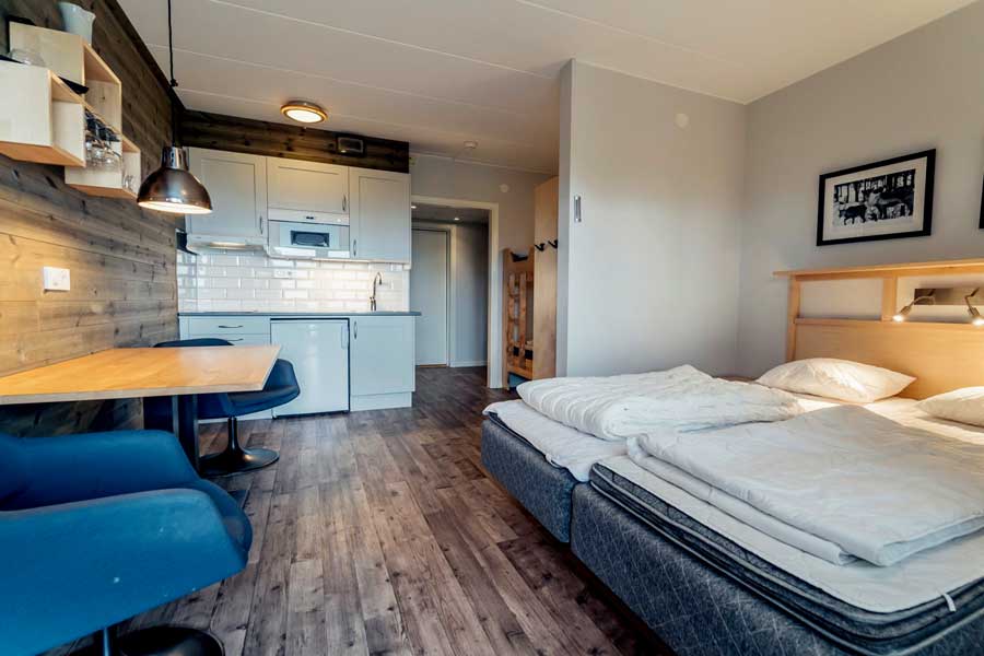 De Ski Apartments in Idre Fjäll zijn modern en efficiënt ingericht als een studio. Verder zijn ze voorzien van de gemakken die je nodig hebt voor een onbezorgde wintersportvakantie in Zweden. De in het hoofdgebouw gelegen appartementen doen denken aan hotelkamers, maar je kan hier volledig zelfstandig jouw vakantie in Idre Fjäll vieren. Wil jij de sfeer van een hotel, maar toch zelfstandig kunnen bepalen wat je eet en wanneer, dan ben je in de Ski Apartments van Idre Fjäll helemaal op je plek.In het kortVan 19 december 2025 tot 14 maart 2026 kan je elke week vertrekken voor een vakantie naar Idre FjällMet eigen vervoer naar de wintersportbestemmingComfortabele overtocht met Color Line van Kiel naar OsloIn 4 uren rijden vanaf Oslo ben je op je bestemmingIdre Fjäll beschikt over vele faciliteiten die zorgen voor een onvergetelijke skivakantie.Over de Ski ApartmentsDe studio’s zijn strak en efficiënt ingericht. Hier vind je alles wat je nodig hebt voor een heerlijke skivakantie.Vier-persoons appartement (25m2)Ski-in ski-outIn de studio staat een tweepersoonsbed met losse matrassen en een stapelbedEethoek met twee stoelen en televisieKitchenette met elektrisch fornuis en magnetronBadkamer met douche en toiletAlgemene opbergruimte voor ski’sWiFiBedlinnen en eindschoonmaak zijn bij de huur inbegrepen. LET OP: wij raden deze appartementen, vanwege de grootte en inrichting, aan voor maximaal drie volwassenen. LiggingDe appartementen liggen in het hoofdgebouw aan Torget, centraal in Idre Fjäll. De pistes en liften zijn daarom altijd dichtbij, maar ook de andere faciliteiten zoals winkels en restaurants zijn binnen handbereik. Aan Torget vind je o.a de skischool met skiverhuur en de lokale supermarkt ICA Nära. Heb je na een dag skiën geen zin meer om te koken? Reserveer dan een tafeltje in één van de restaurants aan Torget of in het Pernille Wiberg Hotel.