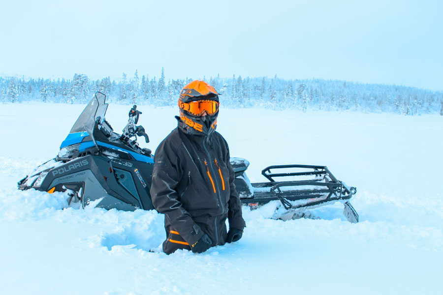 Kleding: Je krijgt een volledig sneeuwscooterpak + helm. Daaronder is thermokleding in principe voldoende, maar kleed je aan naar waar jij je goed bij voelt en flexibel kan bewegen. Het liefst meerdere dunne laagjes, zodat je iets uit kunt trekken mocht het wel warm worden. Een nekwarmer is ook aan te raden.