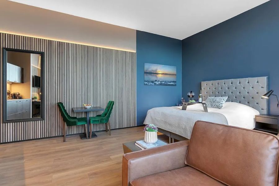 Voordelig self-service hotel op ca. 10-15 minuten lopen van het centrum. Dit hotel, dat voorheen bekend was onder de naam 22 Hill Hotel, is in 2024 onder nieuw management gekomen en heeft een grote metamorfose ondergaan, waarbij alle kamers zijn vernieuwd. Lobby, lift, 55 goede kamers (14-15 m2) met bureau, TV, waterkoker, koffiezetapparaat, koelkastje, douche, toilet en haardroger. Tegen een kleine toeslag kun je ook boeken voor deluxe kamers, die ruimer zijn (18-21 m2) en vrijwel allemaal uitzicht hebben over de bergen en de baai. Gratis wifi. Een ontbijtbuffet is inbegrepen. Het naastgelegen restaurant Potturinn Og Pannan (Pots & Pans) heeft veel IJslandse specialiteiten op het menu staan. Gratis parkeren op straat. Bushalte aan de Laugavegur, op ca. 200 meter van het hotel. Er is geen receptie of personeel; men werkt met een self-service check-in met een sleutelcode. Er is een 24-uurs servicetelefoon in de lobby. Als je tijdens je verblijf de kamer wil laten schoonmaken met nieuw bedlinnen bedragen de kosten hiervoor € 28.