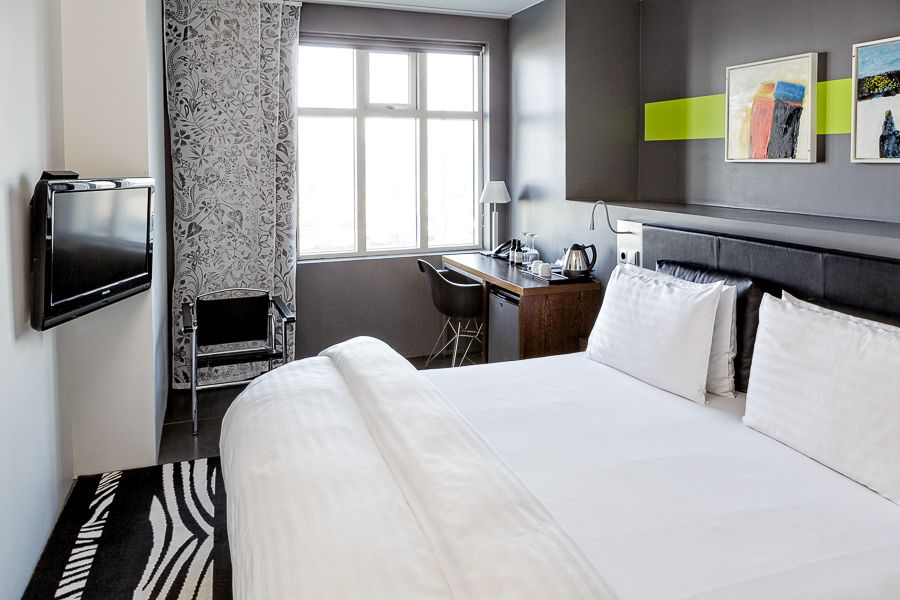 Modern trendy hotel, op een rustige locatie, maar toch vlakbij het centrum, tegenover het Harpa muziek- en congrescentrum. Slechts een paar honderd meter lopen van de Laugavegur, de grootste winkelstraat van Reykjavik. Het hotel is eigentijds, in Scandinavisch design, ingericht. Vriendelijke receptie, lobbybar met zitjes en een flatscreen TV, lift. In de Sky Lounge & Bar op de bovenste etage kun je een drankje gebruiken, dineren of lunchen, met adembenemend uitzicht over de Faxafloi baai en de bergen op de achtergrond. Dakterras, cognac lounge, minispa in de kelder met sauna en steamroom. 104 Uitstekende kamers met plavuizen vloer, voorzien van bad of douche, toilet, haardroger, TV, telefoon, gratis wifi, koffie- en theezetapparaat, minibar en airco, roomservice. Het hotel heeft enkele eigen parkeerplaatsen, publieke parkeerplaats tegenover het hotel.