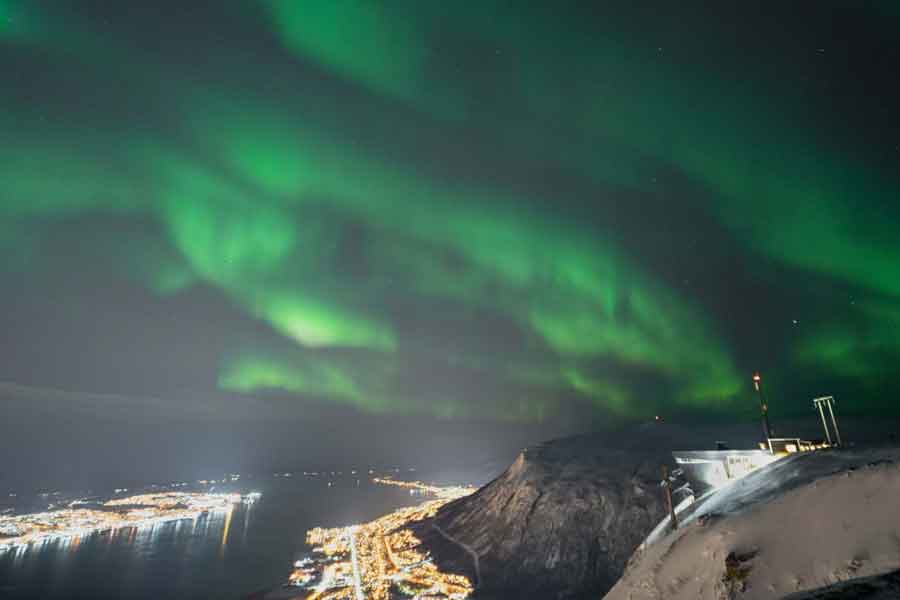 We ontmoeten elkaar in het stadscentrum van Tromsø en rijden met een prive shuttebus naar het dalstation van de Fjellheisen panorama kabelbaan.We mogen de rij overslaan en gaan hier vandaan direct met de Fjellheisenlift de berg op naar 421m boven de zeespiegen waar deze sneeuwschoentocht begint. Vooraf krijg je alle benodigde uitrusting en uitleg van onze ervaren gidsen die je de hele tour begeleiden, zowel voor fun als je veilig houden op de trip. Als het noorderlicht te zien is maken ze ook een mooi Aurora portret van je. Na ongeveer 1 uur op de sneeuwschoenen keren we terug naar het bovenste station waar je buiten onder het genot van een warme drank en zoet broodje kunt genieten van het uitzicht en misschien wel het noorderlicht kunt spotten.Na dit relax moment gaan we weer met de Fjellheisen kabelbaan naar beneden en de prive shuttlebus brengt je weer terug naar het centrum.Vertrek: elke woensdag en zondag