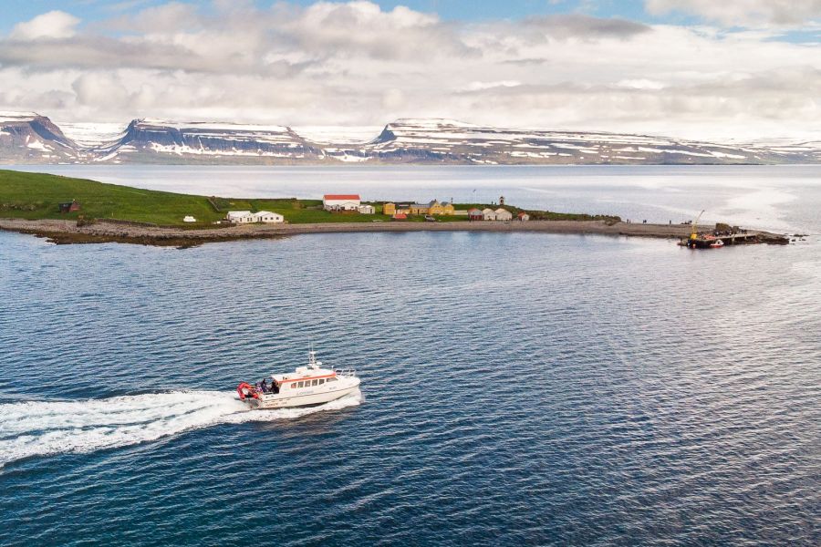 Boottocht vanuit Isafjördur naar Vigur Island. In ongeveer een half uur vaar je door een adembenemend fjordlandschap naar het kleine eilandje, waar de tijd lijkt te hebben stil gestaan. Je kunt een wandeling over het eiland maken, waar duizenden vogels nestelen, zoals eidereenden, papegaaiduikers en Arctische sternen. Er wordt een verfrissing aangeboden in het huis van de lokale boerenfamilie. Op het eiland bevindt zich de enige windmolen van IJsland en het kleinste postkantoor van Europa, waar je ansichtkaarten kan posten. Aan het einde van het broedseizoen wordt het kostbare eidereenden dons uit de nesten verzameld en geexporteerd.Vertrektijd: 14/6-24/8 dagelijks om 14.00 uur