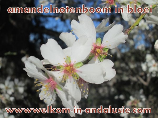 De amandelnotenbomen staan in bloei in andalusie
