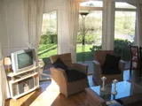 Indeling: woonkamer met zit- en eethoek (TV met nederlandse en internationele programma's, DVD-speler, stereoset, CD-speler) en open keuken met vaatwasser, combimagnetron, senseo apparaat en alle denkbare inventaris en apparatuur.