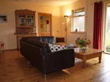 De ruime gezellig ingerichte woonkamer is voorzien van een zitgedeelte met digitale kabel- T.V.(HD-TV 40 inch/100cm) en radio, CD- en DVD-speler en een boekenkast met verschillende boeken en spelen. In de uiterste hoek van de L-vormige woonkamer is een 2-persoonsbed dat d.m.v. een gordijn is te scheiden van de rest van de kamer.