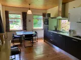 De moderne keuken is volledig ingericht met een 4-pitsgasstel, afwasmachine, grote koelkast met vriesvak, magnetron,oven,grill, koffiezetapparaat,waterkoker,senseo, kinderstoel, eethoek en openslaande deuren naar het overdekte terras.