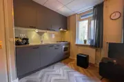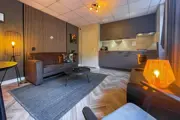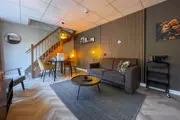 De woonkamer is voorzien van zithoek met LCD tv. Er is een eethoek. De open keuken is ingericht met koelkast, koffiezetapparaat, Nespresso, waterkoker en magnetron. De badkamer heeft een douche, wastafel en toilet. Op de verdieping is een slaapkamer met 2 eenpersoons boxspringbedden en een extra wastafel. Dit appartement ligt op de 1e etage aan de boszijde en heeft een Frans balkon.