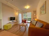De woonkamer is voorzien van zithoek met LCD tv. Er is een eethoek. De open keuken is ingericht met koelkast, koffiezetapparaat, Nespresso, waterkoker en magnetron. Er zijn twee slaapkamers met totaal drie 1-persoons boxspringbedden. De badkamer heeft een douche, wastafel en toilet. Dit appartement ligt op de begane grond en heeft een terras met vrij uitzicht over de weilanden en het bos.
