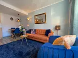 De woonkamer is voorzien van zithoek met tv . Er is een eethoek. De open keuken is ingericht met koelkast, magnetron, koffiezetapparaat, Nespresso en waterkoker. Er zijn twee slaapkamers op dezelfde etage met elk 2 eenpersoons boxspringbedden. De badkamer heeft een douche, wastafel en toilet. Dit appartement ligt op de 1e etage, heeft een balkon op het zuidwesten en uitzicht op de binnentuin met speeltoestellen.
