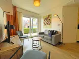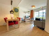 De woonkamer is voorzien van zithoek met LCD tv. Er is een eethoek. De open keuken is ingericht met koelkast, koffiezetapparaat, Nespresso, waterkoker en magnetron. Er zijn twee slaapkamers met elk 2 eenpersoons boxspringbedden. De badkamer heeft een douche, wastafel en toilet. Dit appartement ligt op de begane grond, heeft een terras en grenst aan de binnentuin en het speeltuintje.