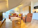 De woonkamer is voorzien van een zithoek met LCD tv, en een eethoek. De open keuken is ingericht met koelkast, vaatwasser, koffiezetapparaat, Nespresso, waterkoker en magnetron. Er zijn twee slaapkamers met elk 2 eenpersoons boxspringbedden. De badkamer heeft een inloopdouche, wastafel en toilet. Dit appartement ligt op de 2e etage en heeft geen balkon of terras.