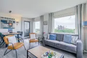 Sfeervol ingericht 4-persoons hoek appartement op de 1e etage met Panorama uitzicht. De ruime woonkamer heeft een heerlijke zithoek met tv en een eethoek met eettafel voor 4 personen. Vanuit de woonkamer heb je uitzicht over de duinen en de Noordzee . De nette open keuken is van alle gemakken voorzien zoals een vaatwasser, combimagnetron, koelvriescombinatie en verschillende koffiemachines. Er zijn 2 slaapkamers, beide met twee 1 persoons boxspringbedden. In de grootste slaapkamer heeft u vanuit bed een prachtig uitzicht over de Noordzee. De ruime badkamer heeft een ligbad, douche en een dubbele wastafel. Het toilet is apart gesitueerd. Vanaf het balkon heb je een prachtig uitzicht over de badplaats Koog, duinen en de Noordzee. Balkon met uitzicht over de Koog, de duinen en Noordzee. Tuinmeubilair is aanwezig.