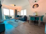 De woonkamer is voorzien van zithoek met tv. Er is een eethoek. De open keuken is ingericht met koelkast, koffiezetapparaat, Nespresso, waterkoker en magnetron. Er zijn twee slaapkamers op dezelfde etage, een met 2 eenpersoons boxspringbedden en een met 1 eenpersoons boxspringbed. De badkamer heeft een douche, wastafel en toilet. Dit hoekappartement ligt op de 1e etage en is bereikbaar met een trap of lift. Het appartement heeft een balkon op het noorden en heeft een vrij uitzicht op de weilanden en het bos.