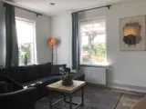 De woonkamer heeft een zithoek met tv. Er is ook een eethoek. De open keuken is ingericht met combimagnetron, koelkast, koffiezetapparaat en waterkoker. Er is een badkamer met douche, wastafel en toilet.Op de bovenverdieping zijn twee slaapkamers waarvan een met 2 eenpersoons boxspringbedden. De andere slaapkamer heeft 1 eenpersoons boxspringbed. Dit appartement heeft een terras met tuinmeubilair.