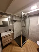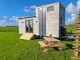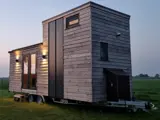 De Tiny house ziet er van buiten eigentijds uit. Van binnen is hij licht, modern en eenvoudig ingericht. Je beschikt over een woongedeelte met een zithoek met een kleine bar om te eten. Er is een prima badkamer met douche en toilet. Het slaapgedeelte bevindt zich boven en is te bereiken via een smalle trap. Door de glazen dakramen kunt je vanuit je bed de sterren zien. Via openslaande deuren kun je naar buiten. Bij mooi weer kun je bij de picknicktafel genieten van de ondergaande zon.