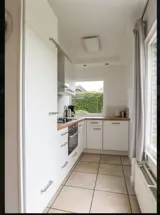 De keuken is van alle gemakken voorzien zoals een waterkoker, koffiezetapparaat, combimagnetron, koelkast met vriesvak, en andere keukenbenodigdheden.