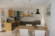 De woonkamer van deze geschakelde bungalow heeft een zithoek met tv en een eethoek. De open keuken is ingericht met combimagnetron, koffiezetapparaat, koelkast met vriesvak en vaatwasser. Er zijn twee slaapkamers met elk 2 eenpersoons boxspring-bedden. De badkamer heeft een douche, toilet en wasbak. Deze bungalow heeft een afgesloten tuin met terras. Tuinmeubilair is aanwezig.