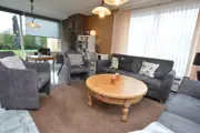 De woonkamer heeft een zithoek met open haard, tv en stereo. De eetkeuken is ingericht met een koelkast, elektrisch kookplaat, koffiemachine, magnetron, oven, vaatwasser en eethoek. Er zijn drie slaapkamers, waarvan twee met tweepersoonsbed voorzien van enkele matrassen. In de derde slaapkamer staat een stapelbed. De badkamer heeft een douche, wastafel, toilet en wasmachine. Tevens is er een apart toilet. Deze bungalow heeft een ruime, afgesloten tuin met een terras op het zuiden. Tuinmeubilair is aanwezig.
